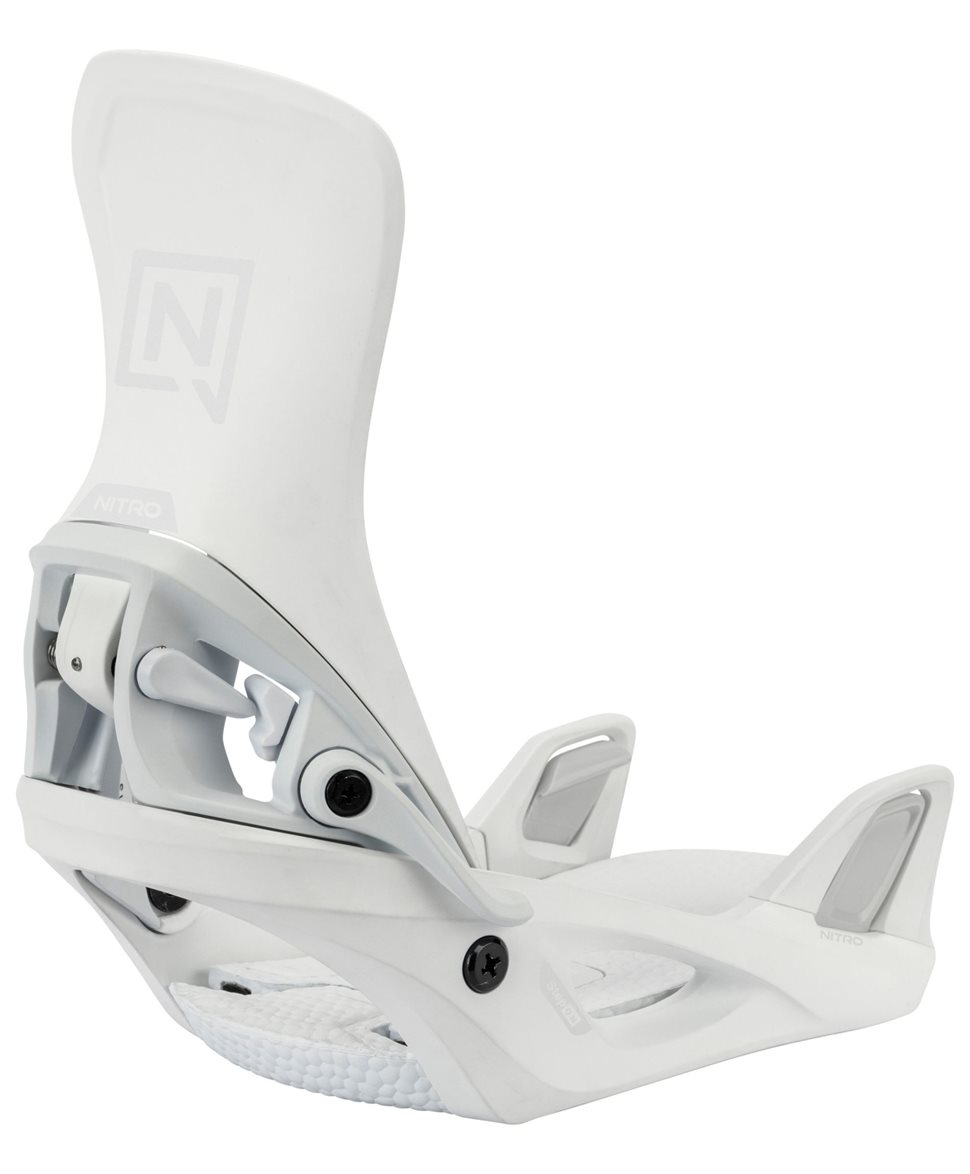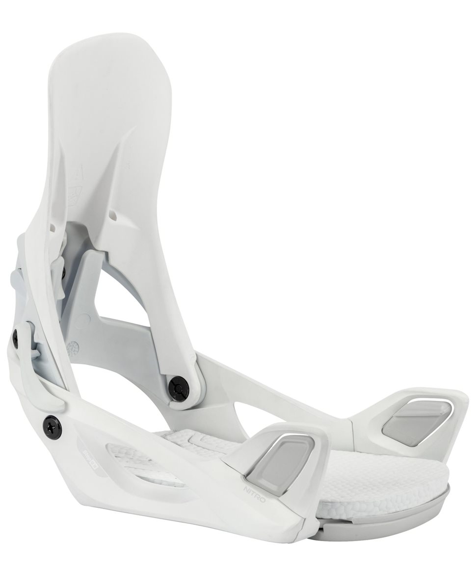 En clean vit Step On-bindning från Nitro som gör åkningen enkel och bekväm. Snabbt insteg, jämn respons och bra stöd för hela berget. Designad för åkare som vill fokusera på åkningen – inte bindningen.
