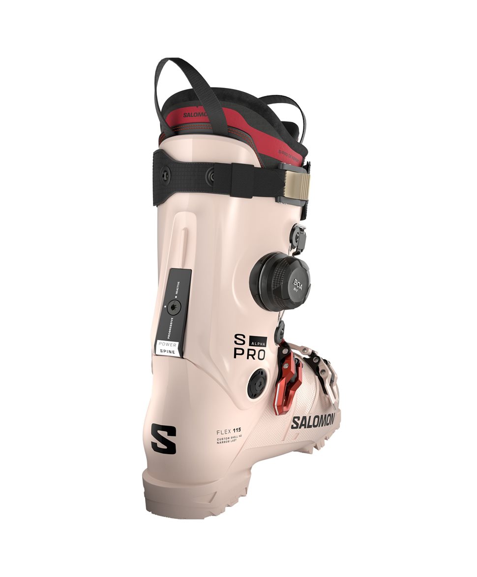 S Pro Alpha BOA® 115 W bygger på den beprövade passformen från Alpha modellen och är framtagen för damåkare som vill ha lyhörd prestanda med rätt flex. ExoDrive konstruktionen och den undre Powerlink punkten ger effektiv energiöverföring och hög precision. Lästen på 98 mm skapar en tajt passform medan BOA® Fit System i manschetten möjliggör exakt finjustering för maximal kontroll.