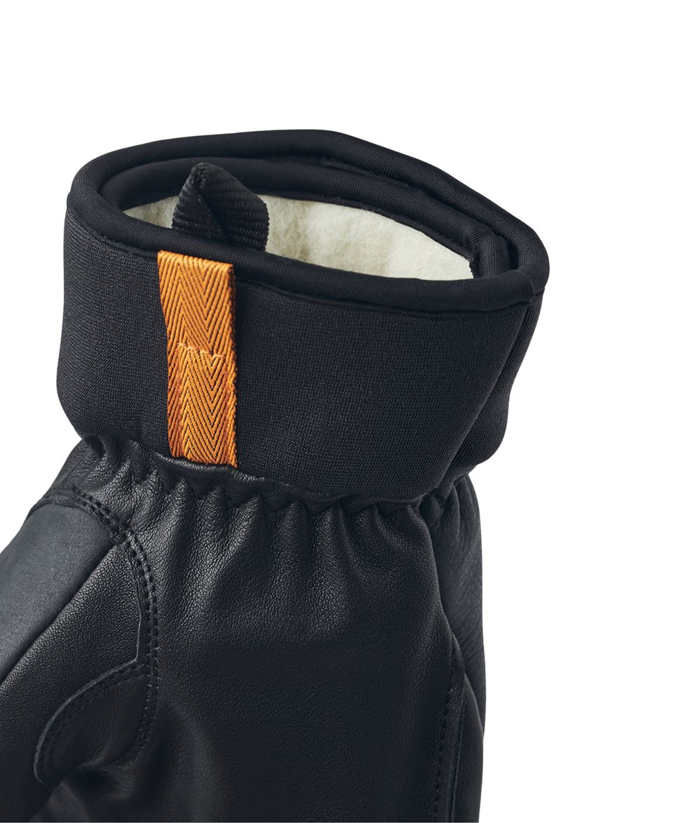 Army Leather Wool Terry 5 finger är en kort skidhandske i läder med löstagbart ullfoder. Handsken är sydd i getskinn och nötnappa för bästa kombination av slitstyrka och rörlighet. Detta är en tålig fingerhandske med bra stavgrepp som passar lika bra vid morgonens manchesteråk som utanför pisten. Den tidlösa designen gör att den också passar till vardags.